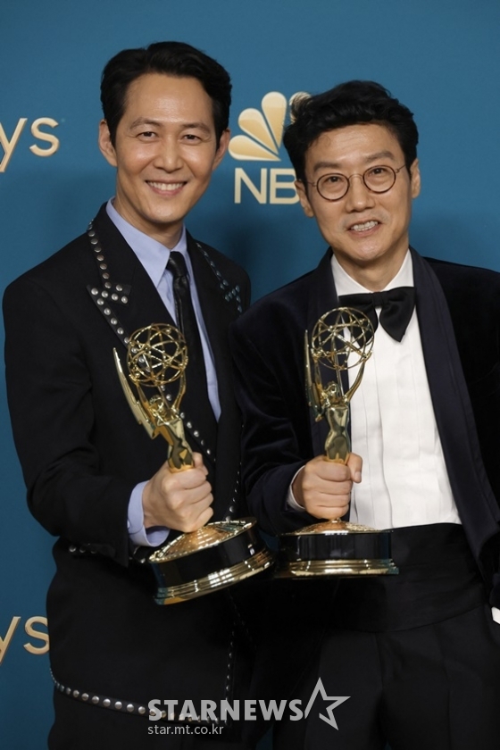 '오징어 게임'은 비영어권 드라마로는 최초로 작품상과 감독상, 각본상 등 6개 부문 후보로 선정됐다. 황동혁 감독은 감독상을 받았고 주인공 '성기훈'을 연기한 이정재는 에미상 남우주연상 후보에 올라 수상했다. '오일남' 역의 오영수, '조상우' 역의 박해수는 남우조연상 후보에 '강새벽'을 연기한 정호연은 여우조연상 후보에 이름을 올렸지만 아쉽게도 수상은 불발 됐다.