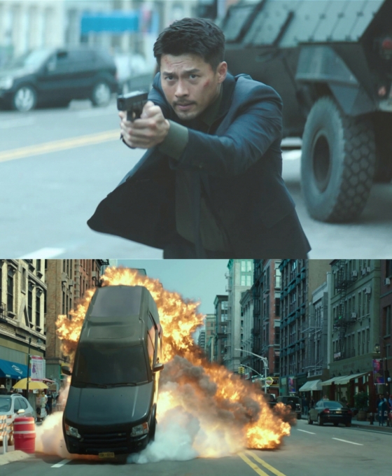 첫 번째 액션 명장면은 화끈한 액션의 시작을 알린 뉴욕 폭파신이다. '철령'과 '잭'이 '명준'을 북한으로 송환하던 도중 뉴욕 한복판에서 벌어지는 총격전과 아찔한 카 체이싱, 폭파신은 순식간에 아수라장이 된 현장을 드라마틱하게 포착하며 관객들의 몰입감을 끌어올렸다. 특히 6개월 이상의 기간을 거쳐 국내에서 제작된 뉴욕 시가지 세트와 카 체이싱 장면을 위해 제작된 100미터에 달하는 4차선 아스팔트 도로는 한층 리얼한 볼거리를 완성, 영화의 시작부터 관객들의 시선을 사로잡고 있다.