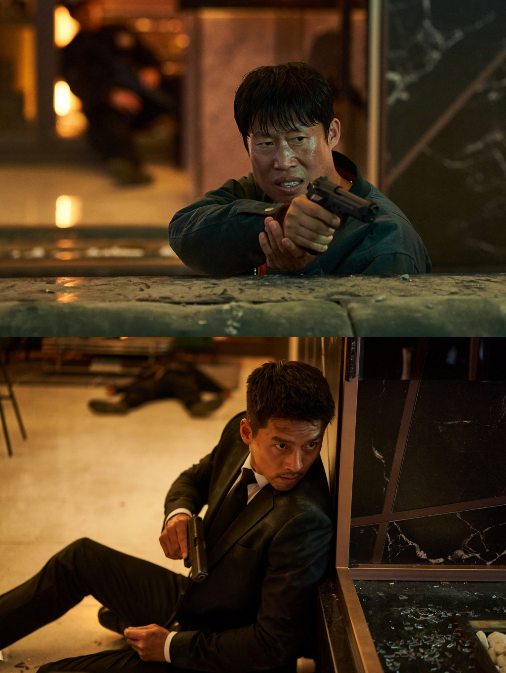두 번째 액션 명장면은 보는 순간 심장이 쫄깃해지는 호텔 총격신이다. 글로벌 범죄 조직의 리더 '명준'을 끈질기게 추격한 끝에 다시 마주하게 된 북한 형사 '철령'과 남한 형사 '진태'는 거침없는 총격 액션을 선보이며 치열한 접전을 펼친다. 무차별하게 쏟아지는 총알들, 일촉즉발의 상황 속 막강한 화력의 총격 액션을 벌이는 현빈, 유해진, 진선규의 카리스마 넘치는 모습은 스크린을 압도하며 관객들을 사로잡았다.
