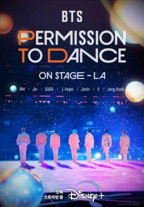디즈니플러스가 방탄소년단(BTS)의 미국 LA 공연 실황을 담은'BTS: PERMISSION TO DANCE ON STAGE - LA'를 10월 4일 단 한 번뿐인 싱어롱 상영회로 개최한다.