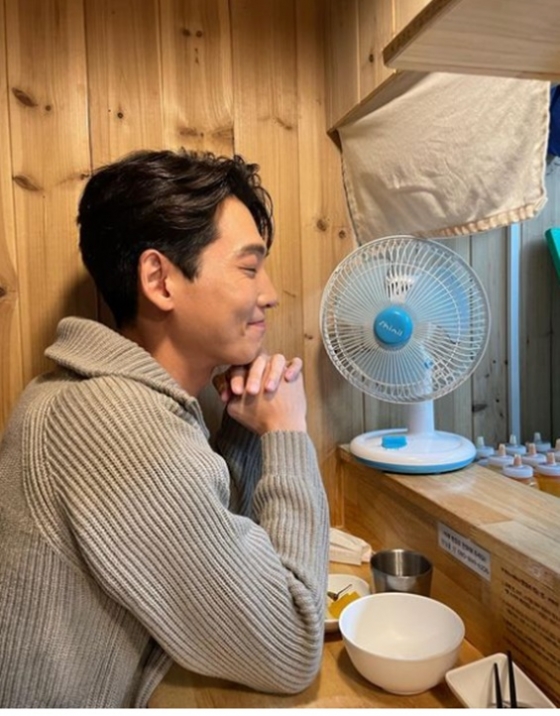 정경호는 3일 자신의 인스타그램에 한 식당에 찾아가 음식을 먹기 전 기다리는 사진을 게재했다. 정경호는 가을 느낌의 니트를 입고 두 손을 맞잡고 음식을 기다리는 모습. 바로 앞에는 선풍기가 놓여있다.