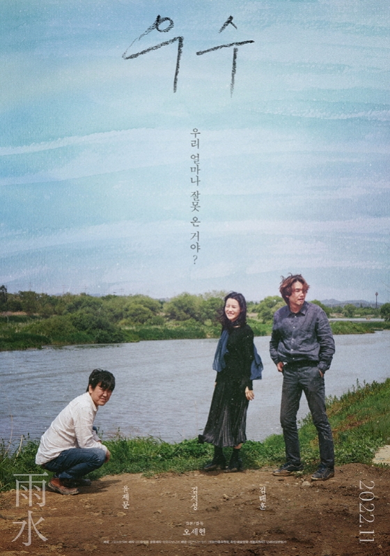 11월 개봉 확정 소식과 함께 공개된 영화 '우수'의 론칭 포스터는 스냅샷 같은 배우 윤제문과 김지성, 김태훈 세 사람의 자연스러운 모습이 단박에 눈길을 끈다. 죽은 후배의 장례 조문에 나선 세 사람이 그 여정에서 잠시 이탈해 짧은 휴식을 취하는 장면을 한 프레임 안에 포착해 로드무비만의 매력을 살짝 맛볼 수 있다. 수채화 특유의 '농담'으로 표현된 하늘이 마치 영화 '우수'가 담은 삶과 죽음에 대한 가장 따뜻한 '농담'을 은유하듯 오묘한 색깔로 표현되어 인상적인 뉘앙스를 짚어준다. 여기에 "우리 얼마나 잘못 온 거야?" 라는 카피가 더해져 세 사람의 여정이 순탄치 않을 것임을 슬며시 비춘다.