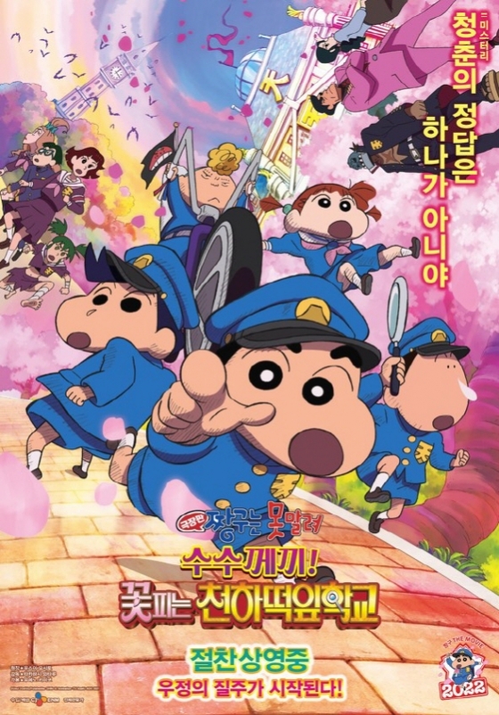 '극장판 짱구는 못말려: 수수께끼! 꽃피는 천하떡잎학교'는 짱구와 친구들의 학교 입학 및 시리즈 최초 선보이는 미스터리 장르로 기존 팬들의 뜨거운 관심을 받았다. 짱구와 친구들의 학교 입학 후 다양하고 새로운 신규 캐릭터들과 펼치는 티키타카 케미, '청춘'과 '우정'에 대한 힐링 메시지, 미스터리 등이 호평을 받고 있다. 가족 관객 외에 성인 타겟들에게 '갓띵작'이라는 열광적인 반응을 받으며 개봉 4주차에도 좌석판매율 TOP 3를 기록 중이다.