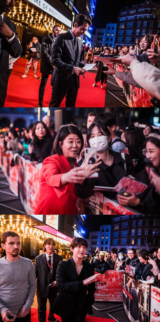 런던의 랜드마크 레스터 스퀘어 오데온 극장에서 진행된 영화제 개막식 레드카펫에 이정재와 이정은, 임시완이 등장했다. 이들은 개막식 현장으로 몰려든 관객들의 사진 촬영 요청과 사인 세례에 빠짐없이 응하면서 눈을 마주쳤고 감사 인사를 전했따.