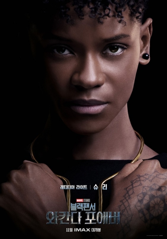 또 레티티아 라이트는 "이번 작품 속 슈리 캐릭터를 한 단어로 표현하자면 굉장히 용감하다는 것이다. 슈리가 '블랙팬서' 첫 영화에서는 왕의 여동생으로 나와서 창의적이고 기술적으로 뛰어난 능력을 보였다"라며 "'와칸다 포에버'에서는 오빠를 잃은 깊은 슬픔과 상실감 겪는다. 그런 감정과 아픔을 극복하고 앞으로 나가는 슈리의 여정이 용감하게 펼쳐질 것이다"라고 전했다.