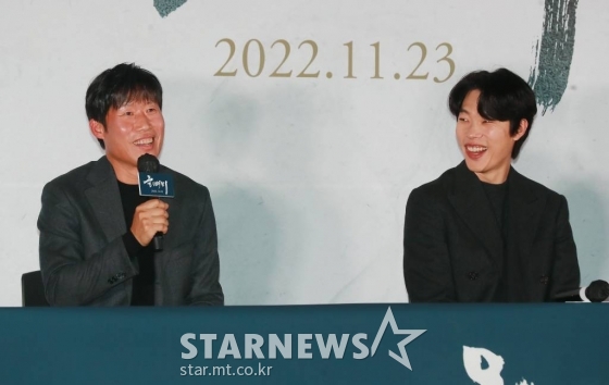 10일 오후 서울 용산구 CGV용산아이파크몰에서 영화 '올빼미'(감독 안태진) 언론배급시사회가 열렸다. 이날 시사회 후 진행 된 기자간담회에는 배우 류준열, 유해진, 안태진 감독이 참석했다.