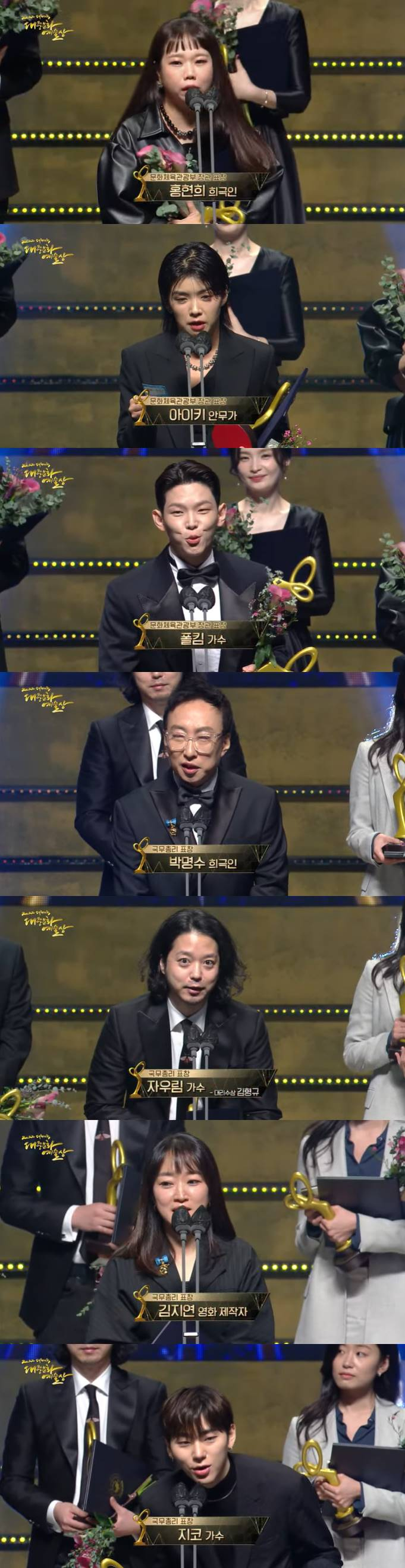 국무총리표창은 배우 이성민, 가수 장필순, 코미디언 박명수, 가수 자우림, 연상호 감독, 넷플릭스 '오징어 게임' 제작자 김지연, 가수 지코 등이 받았다.