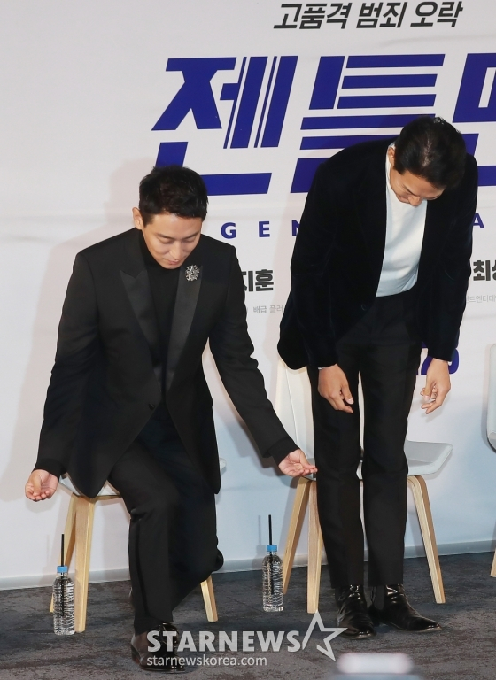 박성웅은 작품 출연 이유를 묻는 질문에 "저는 처음에 '젠틀맨'이라는 대본을 받았을 때 거절을 했다"라며 "제가 너무 그런 (악역) 역할을 많이 해서 처음에는 거절을 했는데 주지훈 배우가 특별 출연한 영화 '헌트' 제주도 촬영장에서 이야기를 꺼내더라. '시원하게 거절 하셨더라고'라고 하더라. 그래서 촬영장에서 주지훈 배우에게 이야기를 듣고, 우리 둘이 해도 좋겠다고 생각이 들었다. 그렇게 주지훈 배우에게 설득당해서 하게 됐다"라고 설명했다.