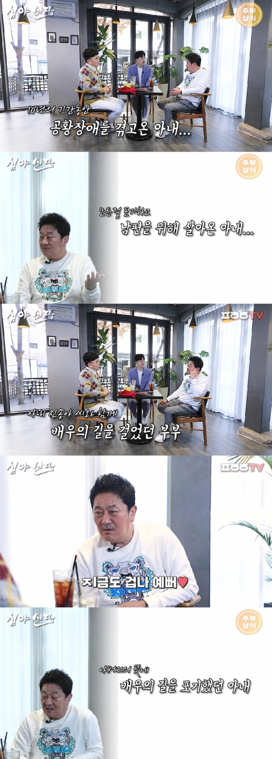 또 "다 버리고 나를 위해서만 살았다. 아내가 중앙대학교 연극영학과를 나오고 배우의 길을 걸었는데 아버지가 '집안에 배우는 한 명만 해라'고 해서 아내가 연기를 그만뒀다"고 털어놨다.