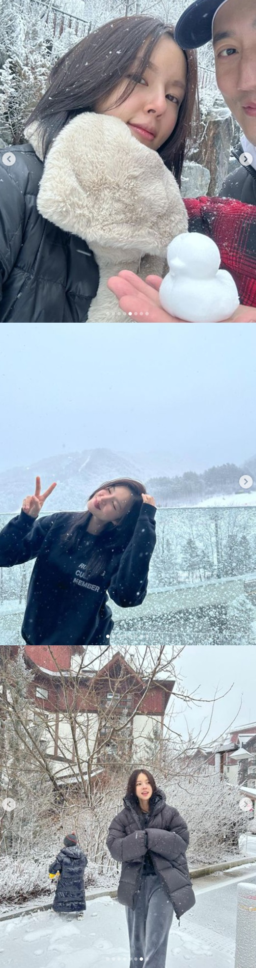 또 조수애는 남편 박서원 대표이사와 다정하게 서서 눈오리를 들고 있는 모습으로 눈길을 끈다. 아들과 함께 눈을 맞으며 즐거운 시간을 보내는 행복한 가족의 모습이 단란함을 전한다.