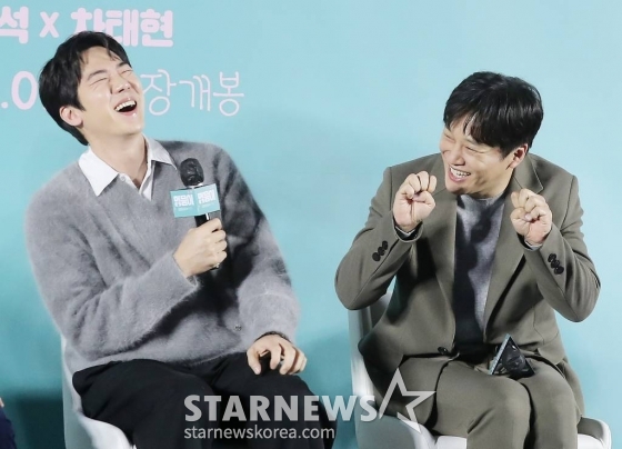 31일 오전 서울 성동구 메가박스 성수에서 영화 '멍뭉이'(감독 김주환) 제작보고회가 열렸다. 이날 행사에는 유연석, 차태현, 김주환 감독이 참석했다.