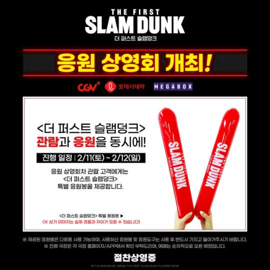예매 관객 전원에게는 더 퍼스트 슬램덩크 '특별 응원봉'이 증정되며, 별도의 응원 도구 지참이나 각자 선수 유니폼을 착용하는 등 자유로운 형태의 응원이 가능하다.