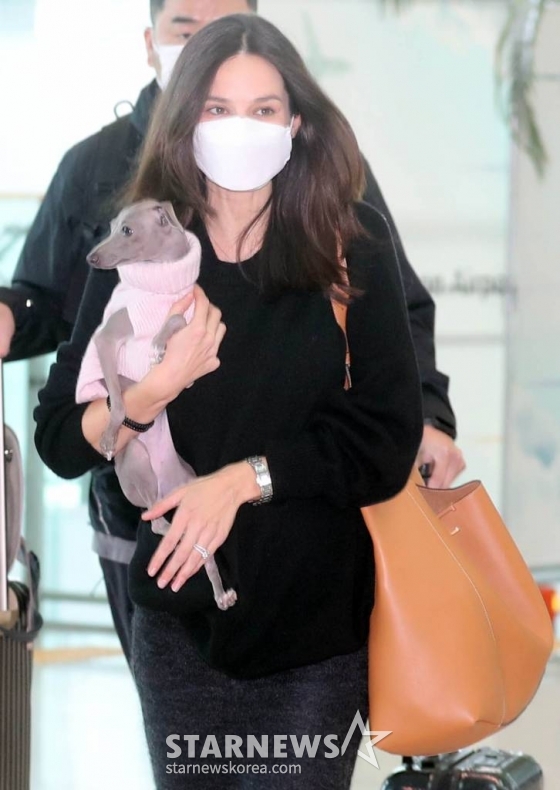 수수한 차림으로 공항에 들어선 송중기는 임신한 아내 케이티 루이스 사운더스를 살뜰히 챙기며 이동했고, 케이티 루이스 사운더스는 반려견을 품에 안고 있어 단란한 가족의 모습을 자랑했다. 송중기는 취재진에게 손을 흔들며 환한 미소를 짓기도 했다. 특히 케이티 루이스 사운더스의 왼손 네 번째 손가락에 빛나는 반지가 눈길을 끌었다.