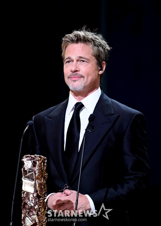 브래드 피트는 최근 프랑스 파리에서 열린 세자르상 시상식에 참석했다. 이날 브래드 피트는 '세븐', '파이트 클럽'등을 함께 한 데이빗 핀처 감독의 수상을 축하하기 위해 무대에 올랐다.