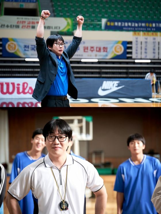영화 '리바운드'가 해체 위기의 농구부 신임 코치로 변신한 안재홍의 캐릭터 스틸을 공개했다.
