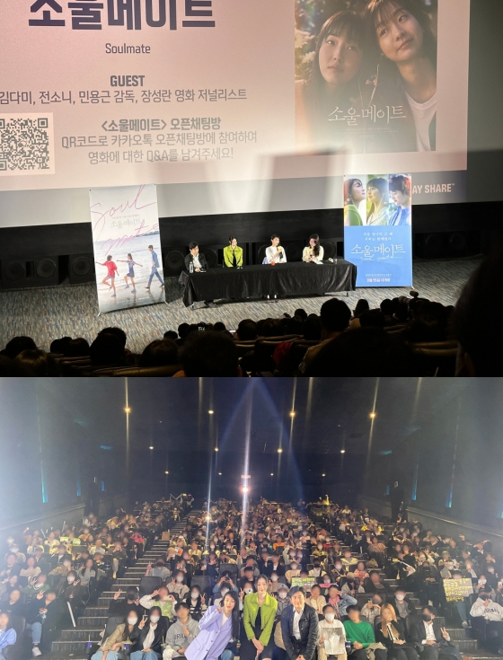 영화 '소울메이트'는 첫 만남부터 서로를 알아본 두 친구 '미소(김다미 분)'와 '하은(전소니 분)' 그리고 '진우(변우석 분)'가 기쁨, 슬픔, 설렘, 그리움까지 모든 것을 함께 한 이야기다. '소울메이트'가 22일 메가박스 코엑스에서 영화 저널리스트 장성란 진행으로 민용근 감독과 김다미, 전소니 배우가 참석한 가운데 개봉 후 첫 관객과의 대화를 개최해 영화에 대한 깊이 있고 진솔한 이야기로 60분을 가득 채웠다.