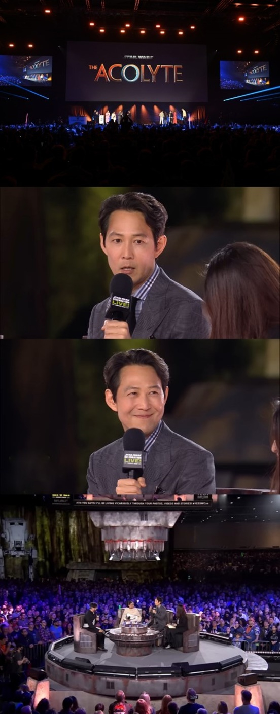 이정재는 '애콜라이트'에서 호흡을 맞춘 배우 아만들라 스텐버그와 함께 참석한 라이브 스테이지에서 "'애콜라이트'의 트레일러를 보여드릴 수 있어서 기뻤다"면서 "지금까지 나왔던 '스타워즈'의 이야기 중에서도 가장 흥미로운 이야기가 될 것 같다"고 전했다.
