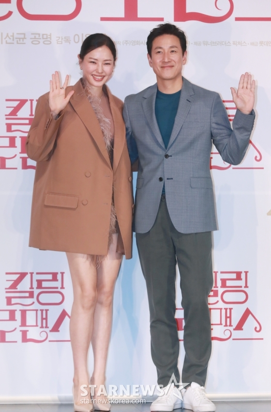 배우 이하늬, 이선균이 10일 오후 서울 광진구 롯데시네마 건대입구점에서 진행된 영화 '킬링 로맨스'(감독 이원석) 언론시사회에 참석해 포즈를 취하고 있다.