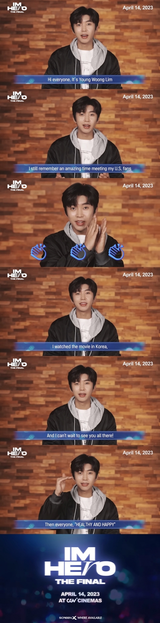 임영웅은 "미국에 계신 영웅시대 여러분들도 아임 히어로 더 파이널을 통해 생생한 콘서트 현장은 물론, 공개되지 않은 비하인드 스토리까지 모두 만나실 수 있으니까요. 여러분들 많이 와주실 거죠? 4월 14일 아임 히어로 더 파이널 미국에서 만나뵙겠습니다"라고 했다.
