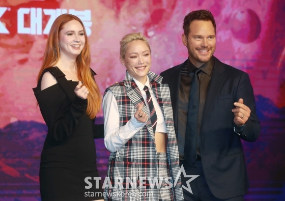 18일 오전 서울 영등포구 여의도 콘래드 서울에서 영화 '가디언즈 오브 갤럭시: Volume 3' 내한 기자간담회가 열렸다. 이날 내한 기자간담회에는 크리스 프랫, 카렌 길런, 폼 클레멘티에프, 제임스 건 감독이 참석했다. 네 사람은 지난 17일 한국에 도착, 한국 관객을 만날 준비를 마쳤다.