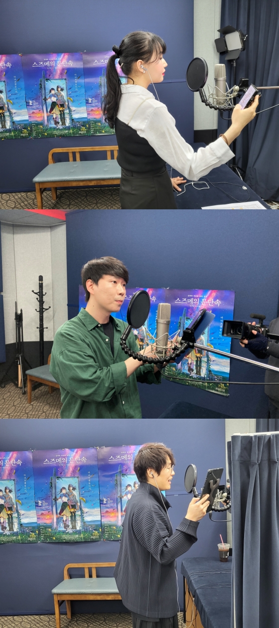 한편 함께 공개된 더빙 현장 스틸에는 '스즈메의 문단속' 한국어 더빙에 참여한 성우진들의 모습이 담겼다. '스즈메' 역의 장예나, '소타' 역의 정주원, '세리자와' 역의 이경태, '다이진' 역의 이선율 성우가 '스즈메의 문단속' 속 한 장면을 연기하고 있다. 마치 각자가 맡은 캐릭터에 빙의된 듯 열정적으로 더빙을 진행하고 있는 성우들의 모습은 '스즈메의 문단속' 한국어 더빙판을 향한 기대감을 고조시킨다.