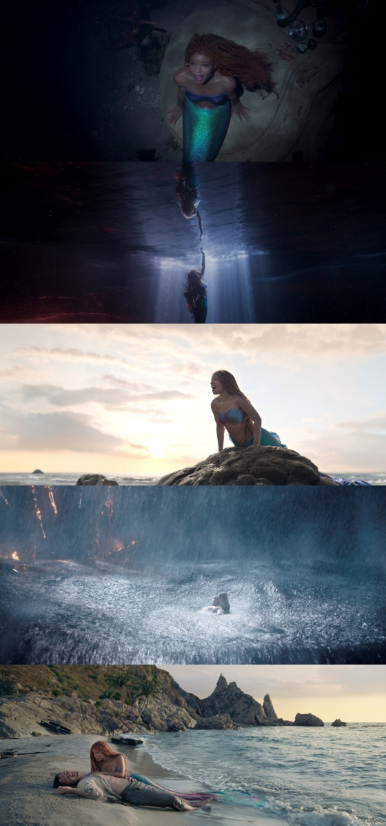 뿐만 아니라, 거대한 파도에 휩쓸린 '에릭 왕자'(조나 하우어 킹 분)를 '에리얼'이 구해주는 장면으로 이들의 첫 만남이자 '에리얼'이 사랑에 빠진 순간을 담아내는가 하면, 바다를 벗어난 '에리얼'이 '에릭 왕자'와 함께 즐거운 한때를 보내는 스틸은 사랑에 빠진 둘의 모습을 엿볼 수 있게 해 이들이 펼칠 감동적인 로맨스에 대한 기대감을 불러일으킨다.