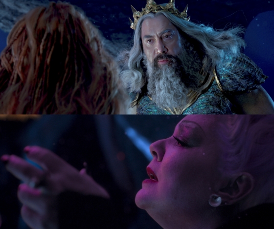 여기에 강렬한 카리스마를 내뿜는 '울슐라'(멜리사 맥카시 분)'와 '트라이튼'(하비에르 바르뎀 분)의 모습을 담은 스틸 역시 눈길을 끈다. 바다 마녀 '울슐라'는 마치 주문을 외는 듯한 손짓과 표정으로 위기감을 예고하며 극에 긴장감을 불어넣을 것으로 기대를 모은다. 여기에 '에리얼'의 아버지이자 바다를 지배하는 왕 '트라이튼'의 결의에 찬 표정을 담은 스틸은 가족과 왕국을 지키려는 그의 굳건한 마음을 엿볼 수 있음은 물론, '에리얼'과 바다 왕국에 찾아올 위기가 어떤 전개를 펼쳐낼지 호기심을 자극한다. 이처럼 바다와 육지를 아우르는 황홀한 비주얼과 각양각색 캐릭터의 모습은 실사화를 통해 새로운 모습으로 다시 태어난 '인어공주'의 볼거리와 이야기에 대한 기대를 한껏 높인다.