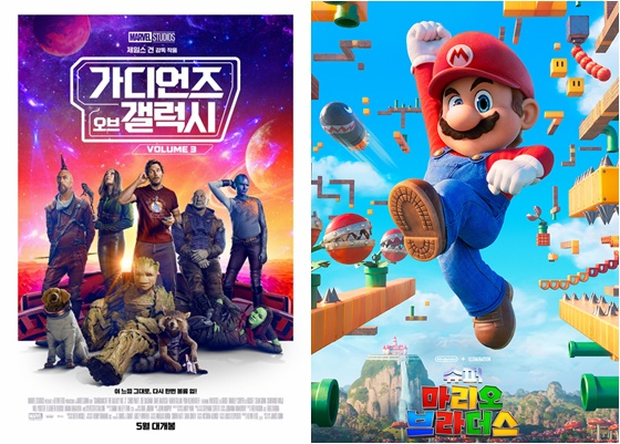 '가디언즈 오브 갤럭시: Volume 3'(이하 '가오갤3')와 '슈퍼마리오 브라더스'가 연휴 극장가를 삼켰다. 일본 애니메이션 흥행에 이어 할리우드 대작이 극장을 꽉 잡았다.