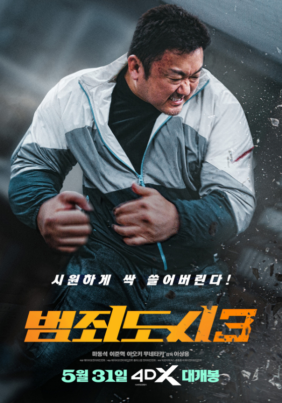 마동석 주연의 범죄 액션 영화 '범죄도시3'가 4DX, IMAX 개봉을 확정하고 특별관 포스터를 공개했다.