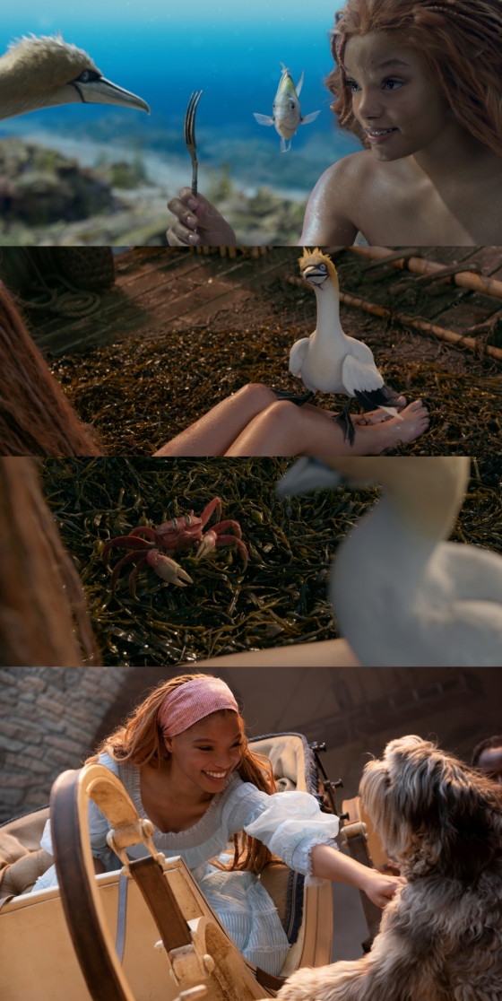 디즈니 실사 뮤지컬 영화 '인어공주'가 '에리얼'과 단짝 동물 캐릭터들 간의 케미스트리를 엿볼 수 있는 스틸을 공개했다.