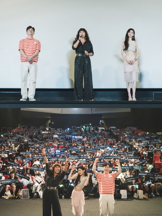 지난 18일 저녁 CGV 용산아이파크몰에서 진행된 시사회 무대인사에는 '에리얼' 역의 뉴진스 다니엘, '울슐라' 역의 정영주, '세바스찬' 역의 정상훈이 참석했다.