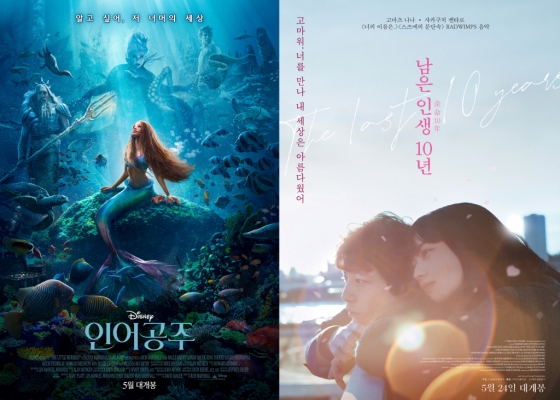 개봉 이후 14일 연속 박스오피스 독주를 이어가던 '가디언즈 오브 갤럭시: Volume 3'의 바통을 '분노의 질주: 라이드 오어 다이'가 이어받게 됐다. 올해 개봉 영화 중 TOP 5는 '스즈메의 문단속', '더 퍼스트 슬램덩크', '가디언즈 오브 갤럭시: Volume 3', '슈퍼 마리오 브라더스', '존 윅 4'로 모두 외화로, 한국 영화는 도무지 비집고 들어갈 틈이 없어 보이는 모양새다. 이 가운데 흑인 주인공 캐스팅 등으로 제작 단계부터 화제를 모은 디즈니 실사 영화 '인어공주', 고마츠 나나, 사카쿠치 켄타로가 뭉친 로맨스 영화 '남은 인생 10년'까지. 두 편의 외화가 극장가를 강타한다.