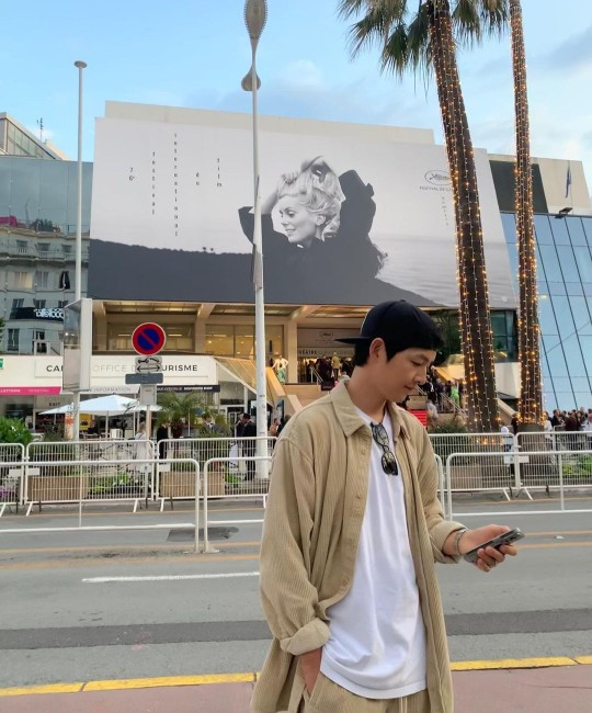 송중기는 지난 22일 칸 국제영화제가 열리는 프랑스 칸에서 찍은 사진을 게재했다. 공개 된 사진 속 송중기는 칸 국제영화제가 열리는 극장 앞에서 편안한 의상을 입고 포즈를 취하고 있다.