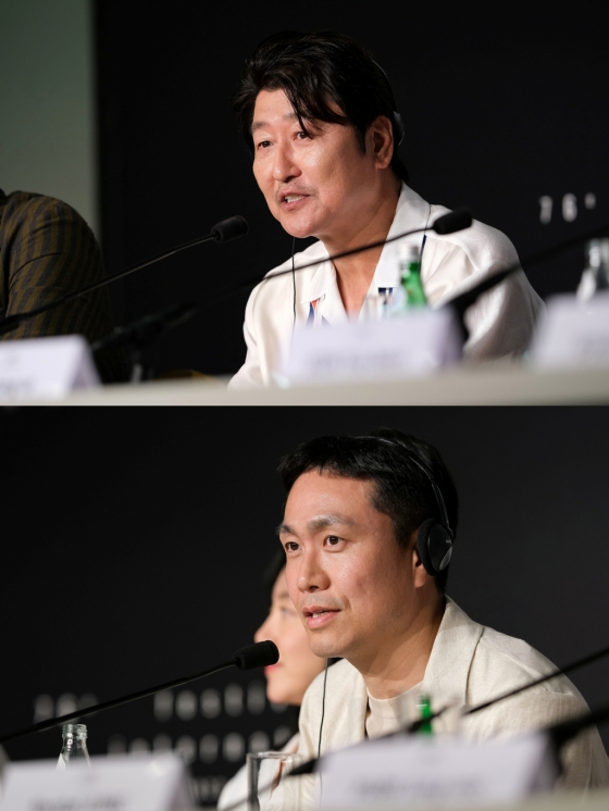 먼저 1970년대를 배경으로 극중 '김감독'이 벌이는 창작적인 면과 검열 등 상황에 대한 이중의 투쟁에 대한 질문에 대해 김지운 감독은 "영화 속 '김감독'은 삼중고의 상황에 처해 있다. 어려운 시대적 환경에서도 '김감독'이 고군분투하고 자신의 비전을 만들어 낸 것처럼, 팬데믹 이후 어려워진 영화의 시대에 처한 현재의 영화인들에게도 어떤 의미를 전달하고 싶었다"고 전했다. 이어 '거미집'에서 최고의 연기를 보여주었는데, 어떤 생각으로 했냐는 질문에 대해 송강호는 "어제 영화를 보는 두 시간 동안 장면들 속에서 같이 연기하는 배우들의 모습이 자랑스럽다고 생각했다. 훌륭한 배우들 속에 끼어서 톱니바퀴처럼 돌다 보니 잘 돌아간 것 같다"며 함께 한 배우들과의 호흡에 공을 돌렸다.