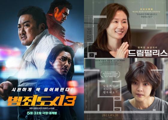 '리바운드'부터 '킬링로맨스', '드림'까지 4월 개봉한 기대작들도 한국 영화의 구원 투수가 되지 못했다. 4월 한국 영화 매출액은 169억 원으로 2017~2019년 4월 한국 영화 매출액 평균(318억 원)의 절반 정도인 53.1% 수준이었다. 관객 수는 173만 명으로 2017~2019년 4월 한국 영화 관객 수 평균(395만 명)의 절반에도 못 미치는 43.8% 수준이었다. 3개월 연속으로 한국 영화 월 관객 수는 100만 명대를 벗어나지 못했고, 올해 개봉 영화 중 '스즈메의 문단속', '더 퍼스트 슬램덩크', '가디언즈 오브 갤럭시: Volume 3'까지 외화 세 편이 흥행 TOP3에 올라있다. 이 가운데 지난해 흥행 신기록을 이어가고 있는 '범죄도시' 시리즈가 돌아온다. '괴물 형사' 마동석이 다시 한번 한국 영화를 살릴 수 있을까.