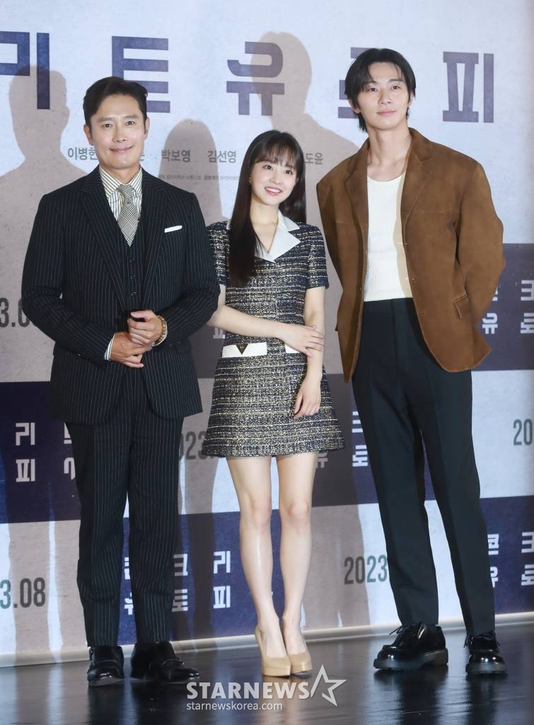 21일 서울시 광진구 롯데시네마 건대입구에서 영화 '콘크리트 유토피아'의 제작보고회가 개최됐다. 이 자리에는 엄태화 감독을 비롯해 이병헌, 박서준, 박보영, 김선영, 박지후, 김도윤이 참석해 다양한 이야기를 나눴다.