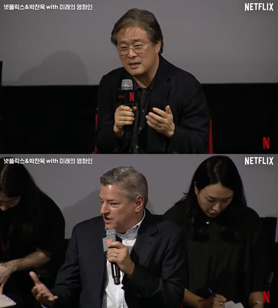 21일 온라인으로 '넷플릭스&박찬욱 with 미래의 영화인' 행사가 열렸다. 이날 행사에는 넷플릭스 CEO 테드 서랜도스와 박찬욱 감독 그리고 이동진 평론가가 참석했다.