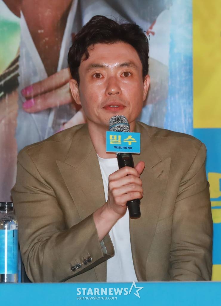 류승완 감독이 18일 오후 서울 CGV용산아이파크몰에서 진행된 영화 '밀수'(감독 류승완) 언론시사회에 참석해 질문에 답하고 있다. 바다에 던져진 생필품을 건지며 생계를 이어가던 사람들 앞에 일생일대의 큰 판이 벌어지면서 휘말리는 해양범죄활극 '밀수'는 7월 26일 개봉한다. /2023.07.18 /사진=이동훈 기자 photoguy@