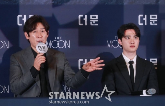 25일 오후 서울 용산구 CGV용산아이파크몰에서 영화 '더문'(감독 김용화) 언론배급시사회가 열렸다. 이날 시사회 후 진행 된 기자간담회에는 배우 도경수, 설경구, 김희애 그리고 김용화 감독이 참석했다.