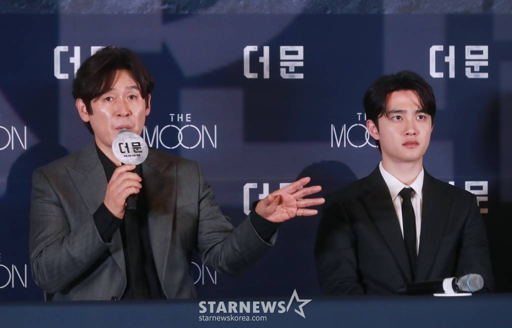 '더문'은 사고로 인해 홀로 달에 고립된 우주 대원 선우와 필사적으로 그를 구하려는 전 우주센터장 재국의 사투를 그린 영화. 도경수가 고립된 대원 황선우 역을 맡아 고군분투 했다. 설경구는 선우를 무사히 귀환시켜야 하는 우주센터 전임 센터장 김재국을 연기했다.