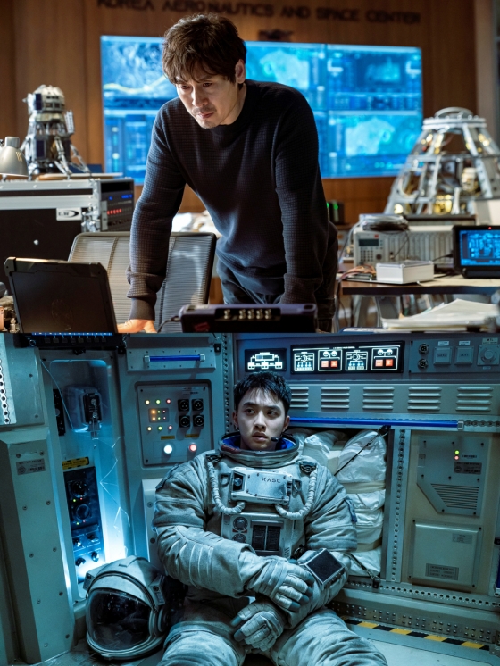 '더 문'(감독 김용화)은 달 탐사를 떠난 대한민국의 우주 대원 선우(도경수 분)가 예기치 않은 사고로 달에서 조난을 당하고, 전 우주센터장 재국(설경구 분)을 비롯해 지구에 남은 사람들이 그를 무사히 귀환시키기 위해 치열한 사투를 벌이는 이야기다.