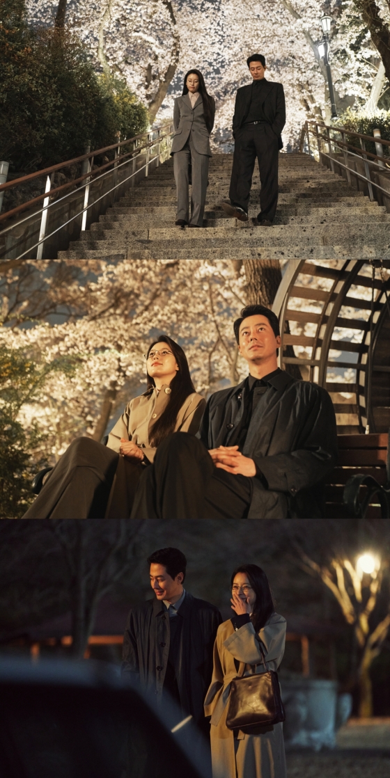먼저, 어딘가 모르게 살짝 어색하지만 상기된 표정으로 벚꽃이 만개한 공원을 거니는 '미현'과 '두식'의 모습이 담긴 벚꽃길 데이트 스틸은 보는 것만으로도 설렘을 느끼게 한다. 어두운 밤을 밝게 비추는 새하얀 벚꽃 나무들 사이로 수줍게 눈빛을 주고받는 두 사람의 모습은 보는 이들도 설레게 할 정도로 로맨틱하다. 적당히 거리를 두며 걷는 두 사람은 이렇다 할 스킨십이 없어도 이제 막 서로에게 호감을 느끼며 시작하는 남녀의 감정을 자연스럽게 담아내고 있다.
