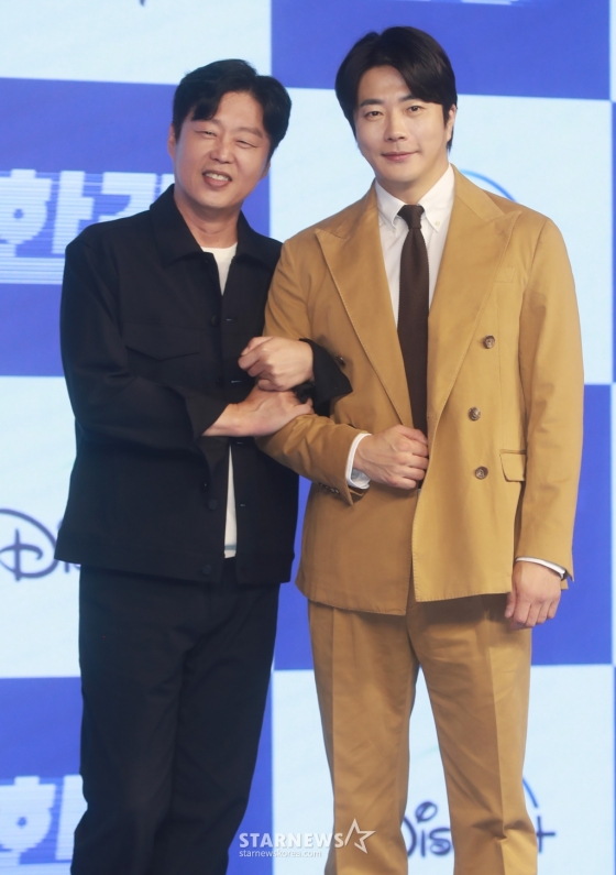 앞서 드라마 '천국의 계단' 속 '소라게짤'을 대유행시켰던 권상우는 '한강'에서도 밈이 될 장면이 있는지 묻자 "이번에도 생성했다. 요즘 어린 친구들이 그런 걸로 유쾌하게 이야기할 수 있다는 것도 나란 배우를 기억한다는 것이니 감사한 일이다. '한강'도 보시면 하나 나온다. 배우들이 잘되는 작품도 있고 성과가 안 나오는 작품이 있지만 모든 작품이 다 기억에 남는다. 이번에 잘 됐으면 좋겠다. 희원이형 말대로 독점은 안 좋은 것 같다. 디즈니가 (잘 됐으면 좋겠다)"고 말했다.