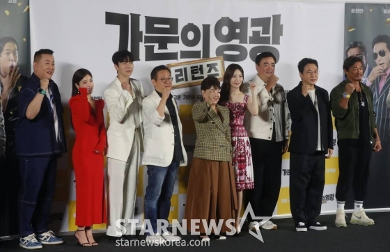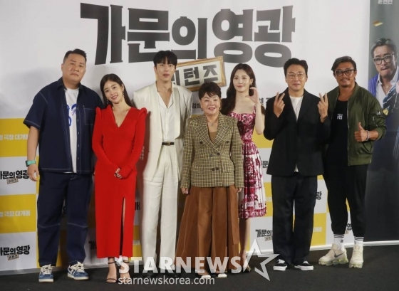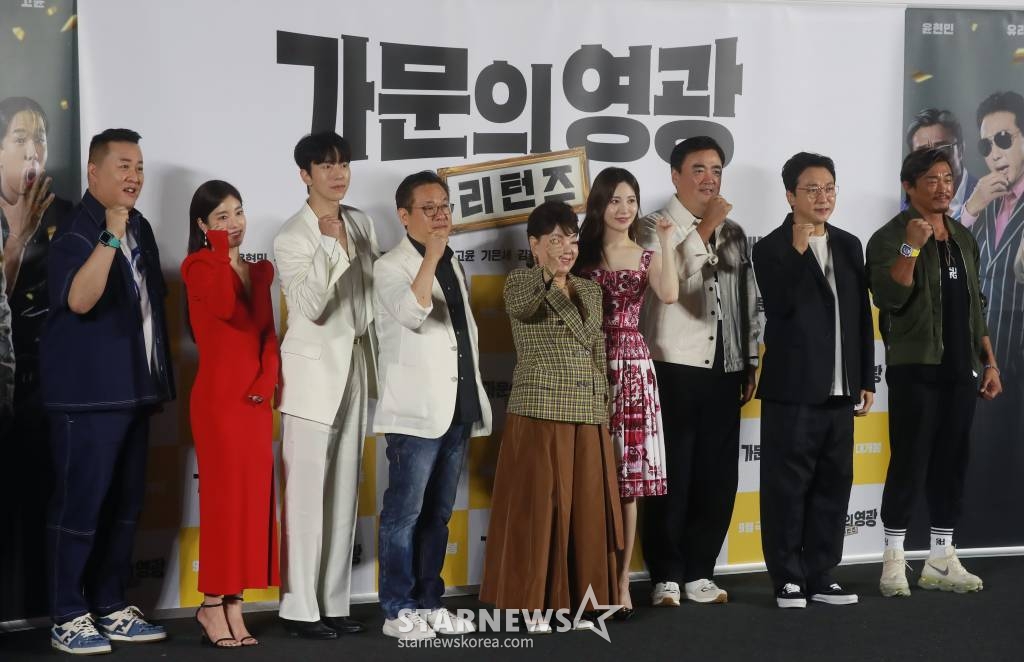 19일 서울시 용산구 CGV용산아이파크몰에서는 영화 '가문의 영광: 리턴즈'의 언론배급시사회가 개최됐다. 이 자리에는 정태원 감독, 정용기 감독, 배우 윤현민, 유라, 김수미, 탁재훈, 정준하, 고윤이 참석해 다양한 이야기를 나눴다.