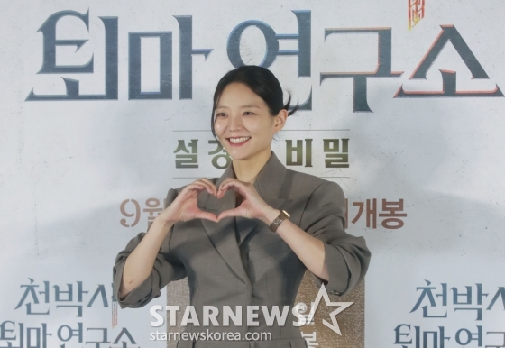 배우 이솜이 19일 오후 서울 CGV용산아이파크몰에서 진행된 영화 '천박사 퇴마 연구소: 설경의 비밀'(감독 김성식) 언론시사회 및 기자간담회에 참석해 포즈를 취하고 있다.