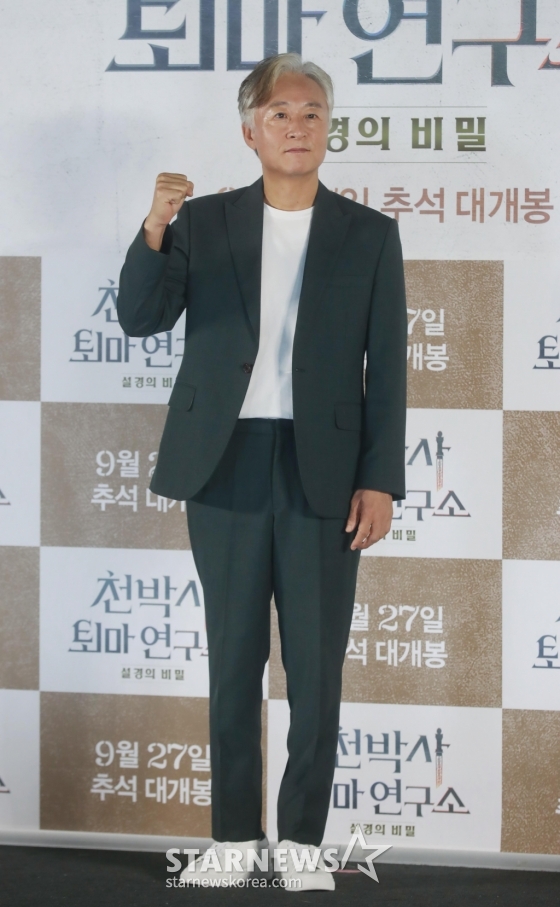 배우 김종수가 19일 오후 서울 CGV용산아이파크몰에서 진행된 영화 '천박사 퇴마 연구소: 설경의 비밀'(감독 김성식) 언론시사회 및 기자간담회에 참석해 포즈를 취하고 있다.