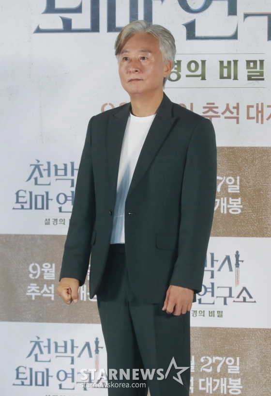 배우 김종수가 19일 오후 서울 CGV용산아이파크몰에서 진행된 영화 '천박사 퇴마 연구소: 설경의 비밀'(감독 김성식) 언론시사회 및 기자간담회에 참석해 포즈를 취하고 있다.
