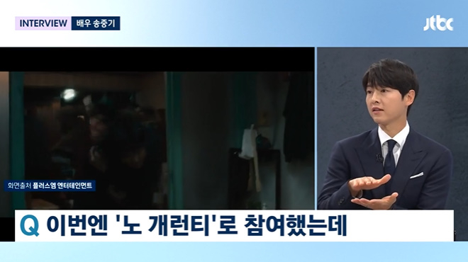 15일 오후 방송된 JTBC '뉴스룸'에는 지난 11일 개봉한 영화 '화란' 홍보 활동차 송중기가 출연했다.