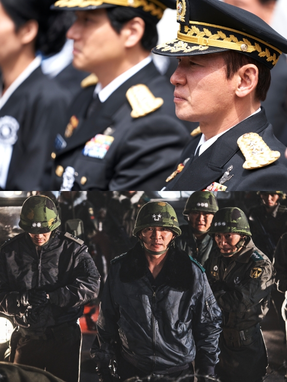 공개된 스틸은 대통령 시해 사건 수사결과 발표 기자회견을 앞둔 순간과 12.12 군사반란 당일 밤 등을 보여준다.