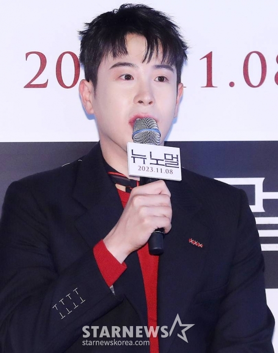 가수 겸 배우 표지훈이 27일 오후 서울 용산구 아이파크몰 CGV에서 진행된 영화 '뉴 노멀' 언론시사회 및 기자간담회에 참석해 인사말을 하고 있다. '뉴 노멀'은 공포가 일상이 되어 버린 새로운 시대에 도착한 웰메이드 말세 스릴러다. 2023.10.27 /사진=김창현